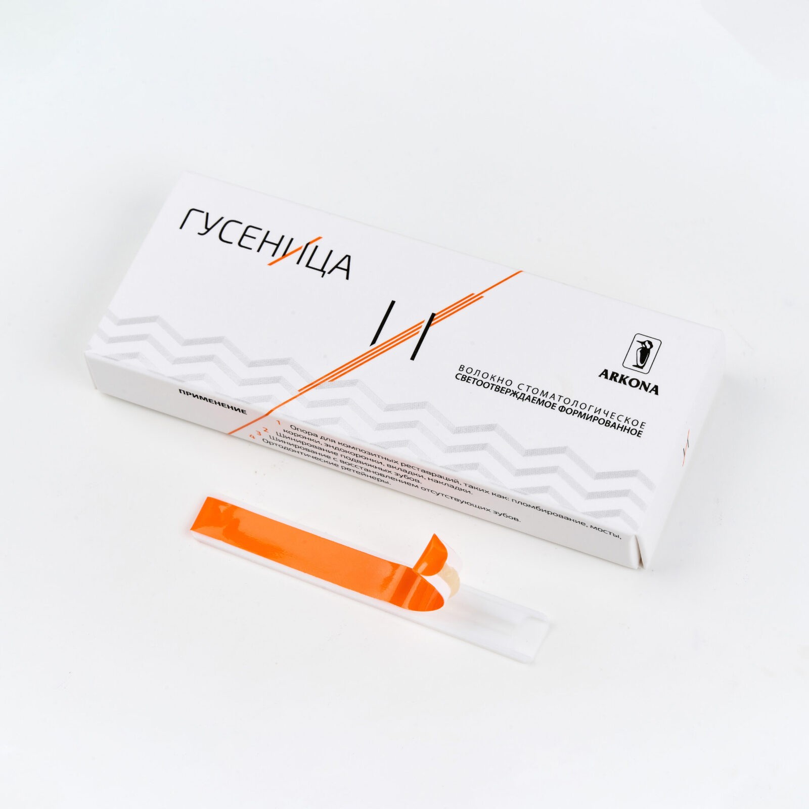 - ГУСЕНИЦА чувствительна к дневному свету. Вынимать волокно из формы непосредственно перед процедурой. Во избежание случайной полимеризации, волокно следует поэтапно извлекать из формы, прикрывая оставшуюся часть оранжевой защитной плёнкой.